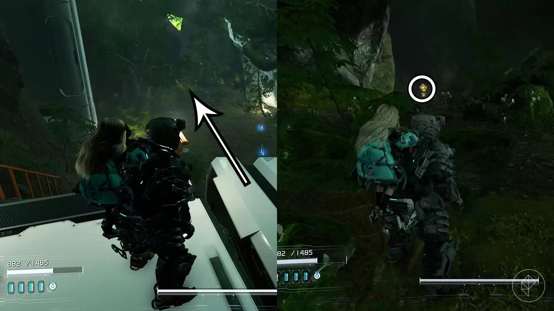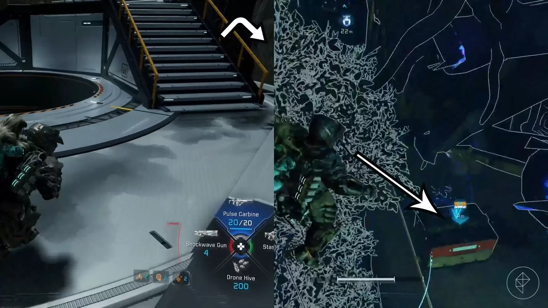 攀爬Central Lift舱门附近的第一段楼梯,随后向左走,从巨大根茎旁的扶手处跳跃过去,即可发现这个升级组件。