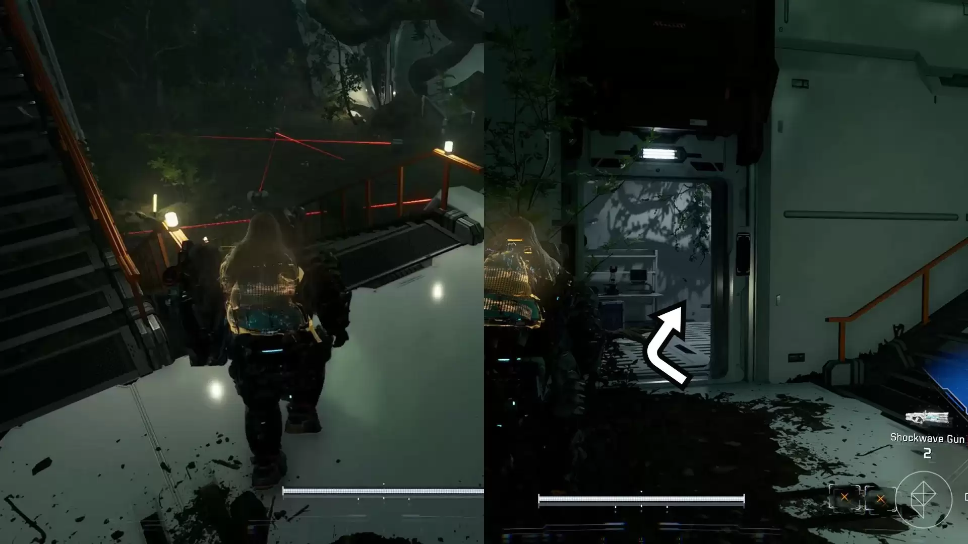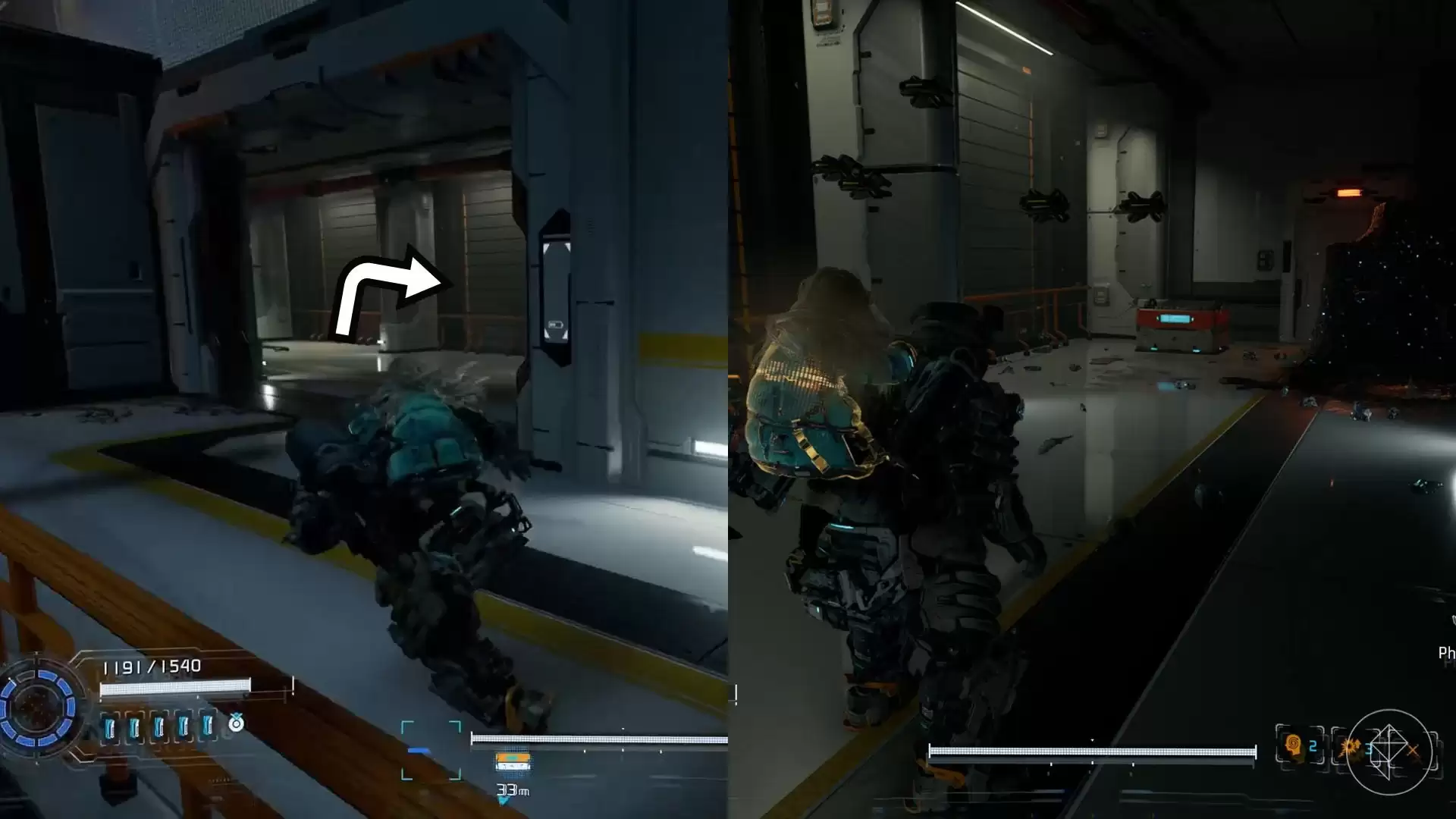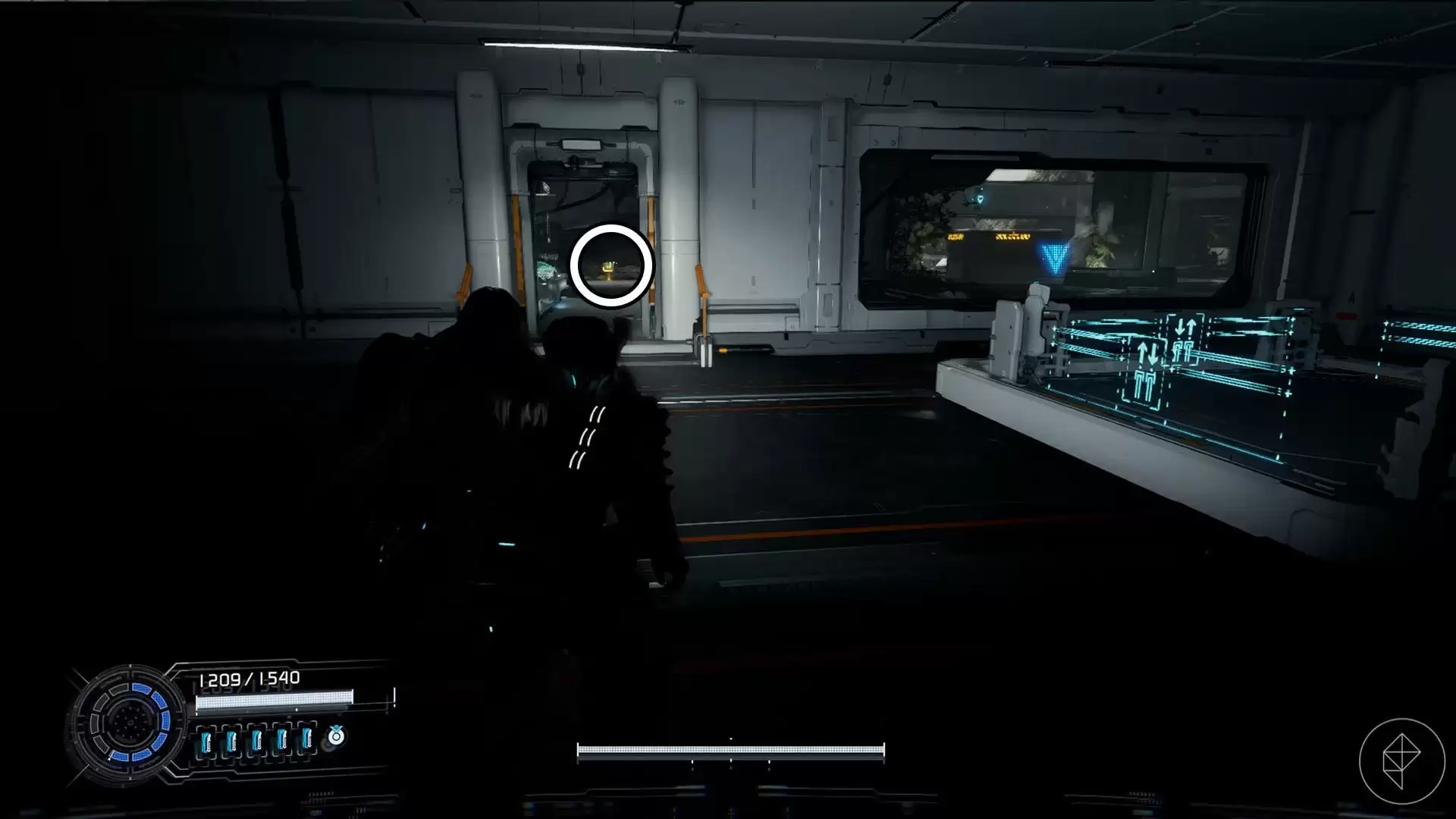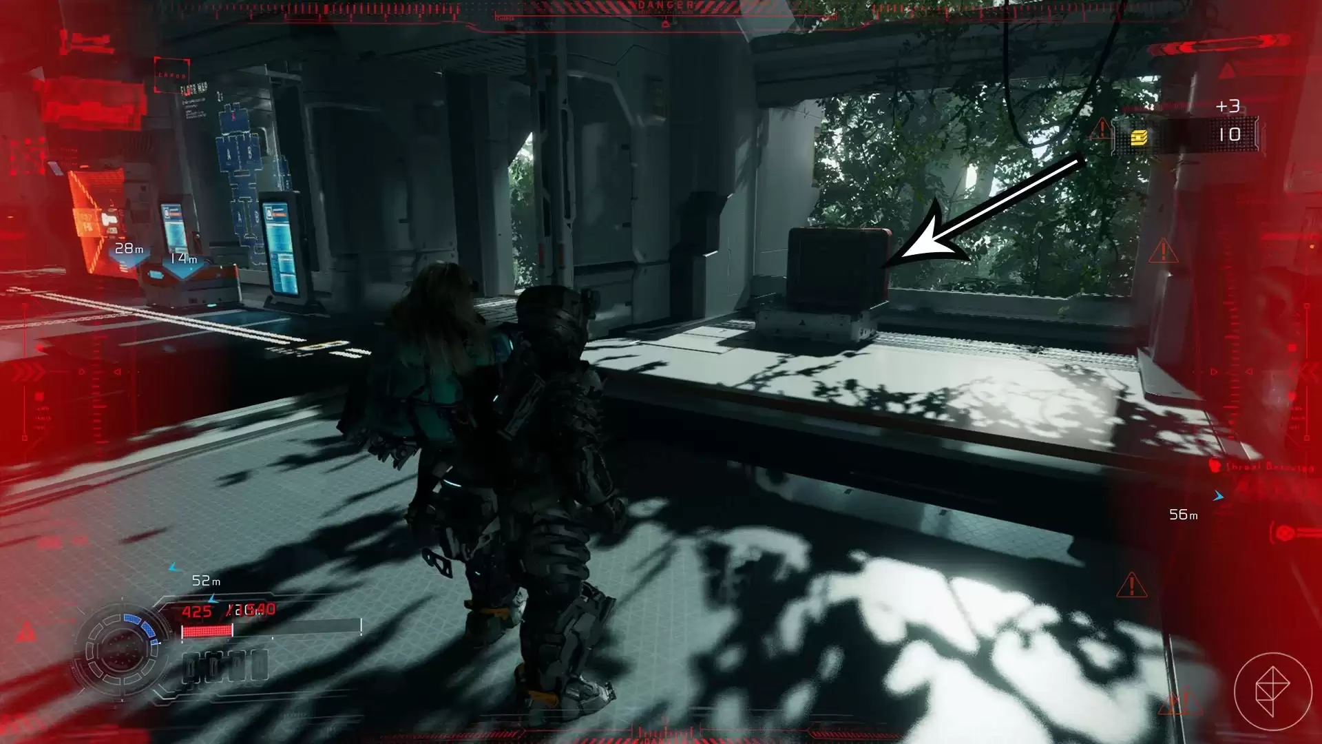 通过Envirolytics Lab站点的舱门后,先不要向下层楼梯移动。请向右看,会发现一个阳台区域。跳跃至阳台并进入房间,内部藏有一个升级组件。