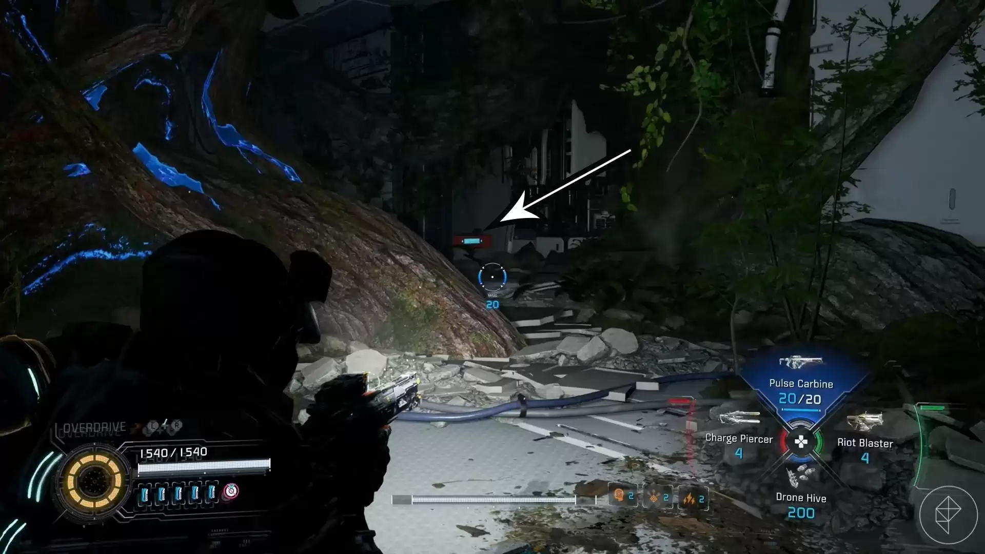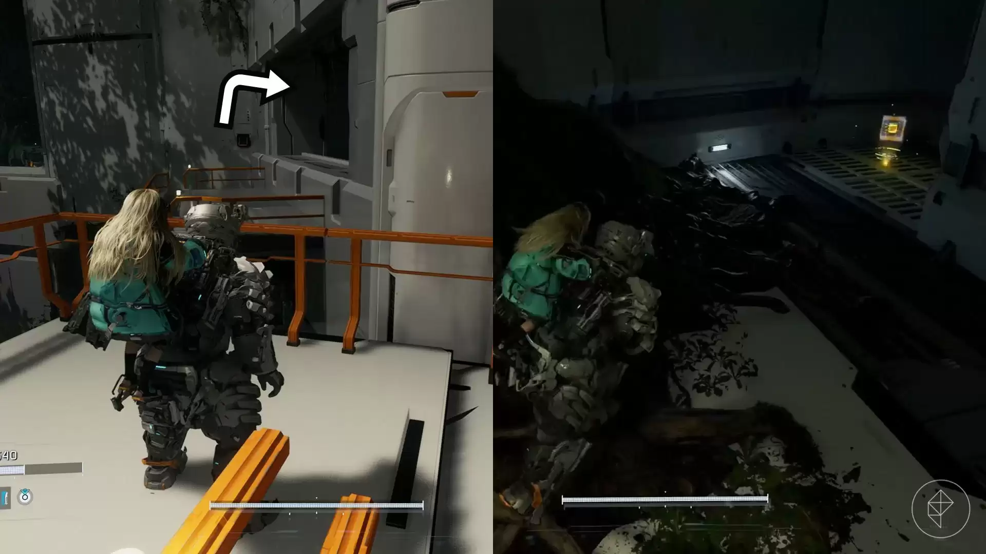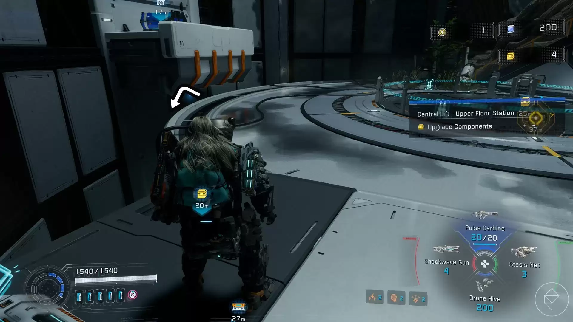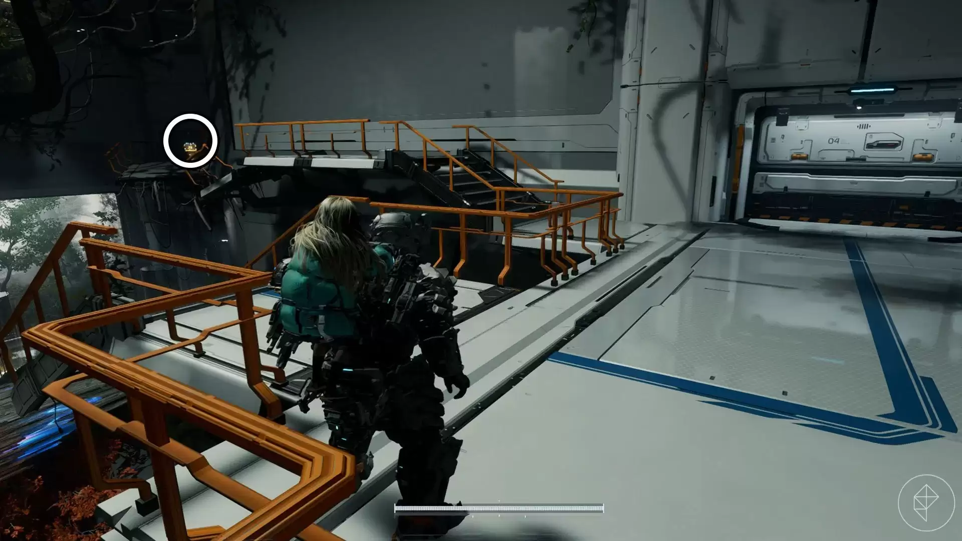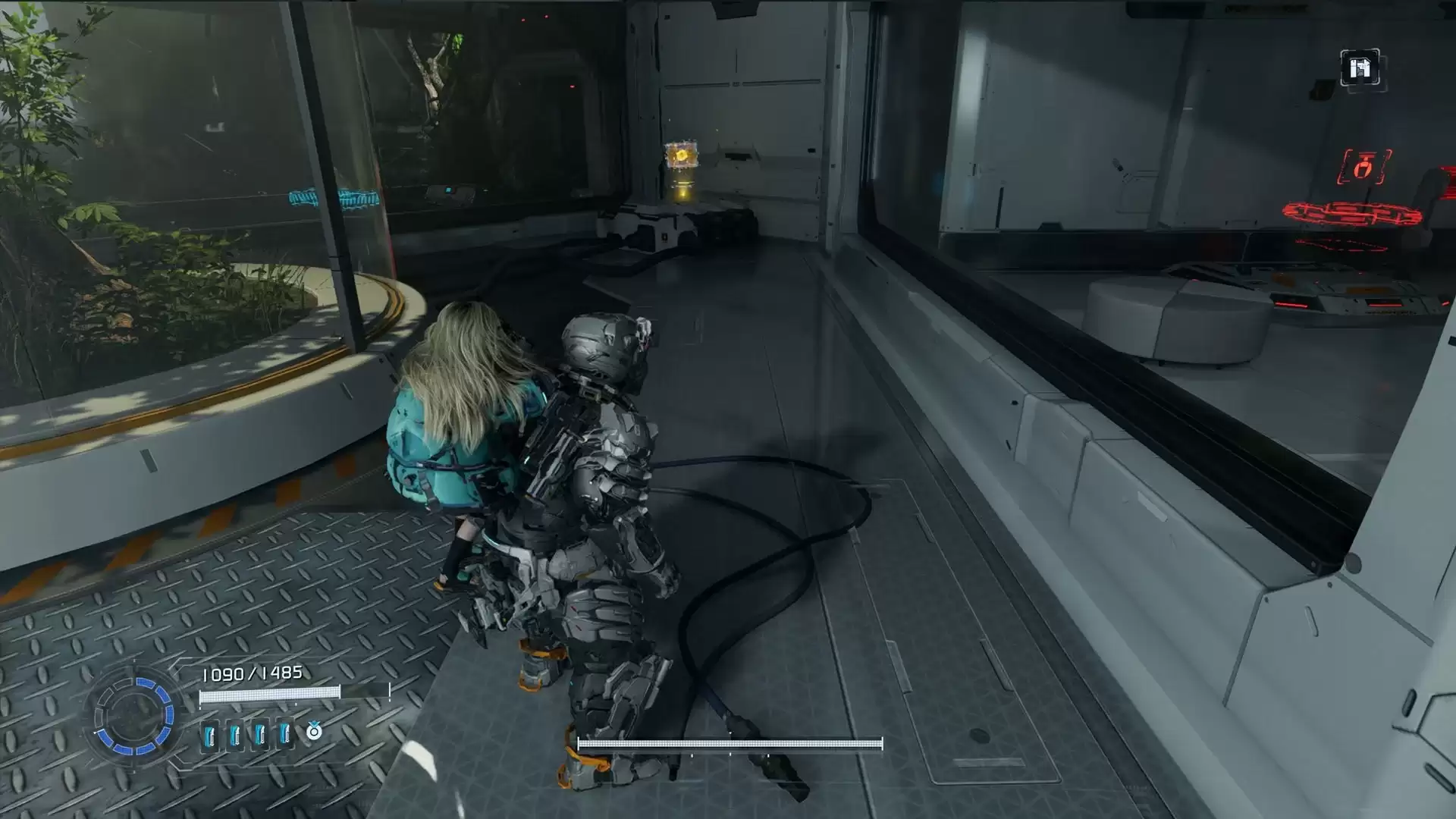 通过Envirolytics Lab站点的舱门后,先不要向下层楼梯移动。请向右看,会发现一个阳台区域。跳跃至阳台并进入房间,内部藏有一个升级组件。