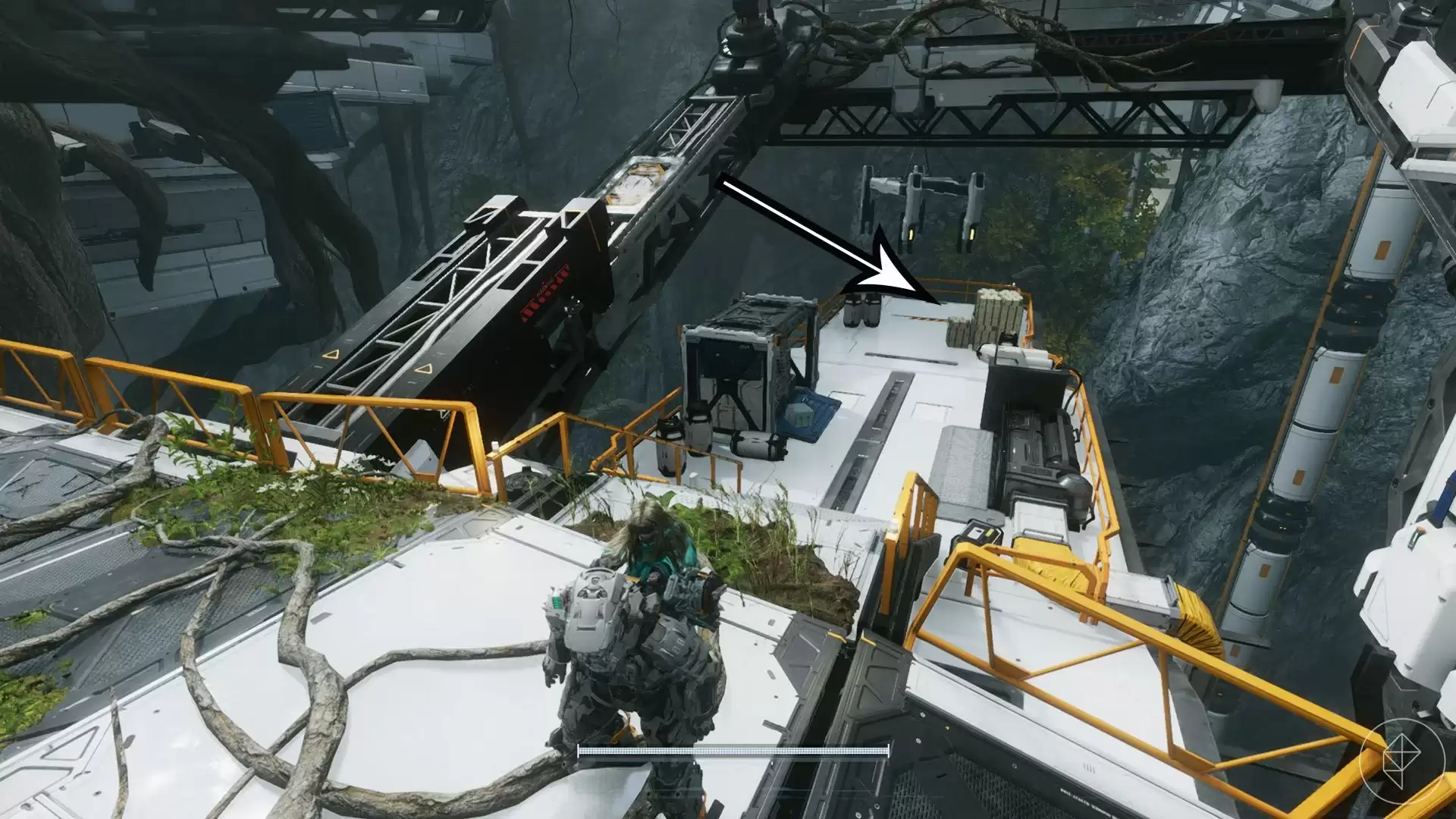 在Central Lift舱门的左侧,有一个带有蓝色插件盒的平台。从该处跳下,降落到下方另一个平台上,升级组件便位于此处。