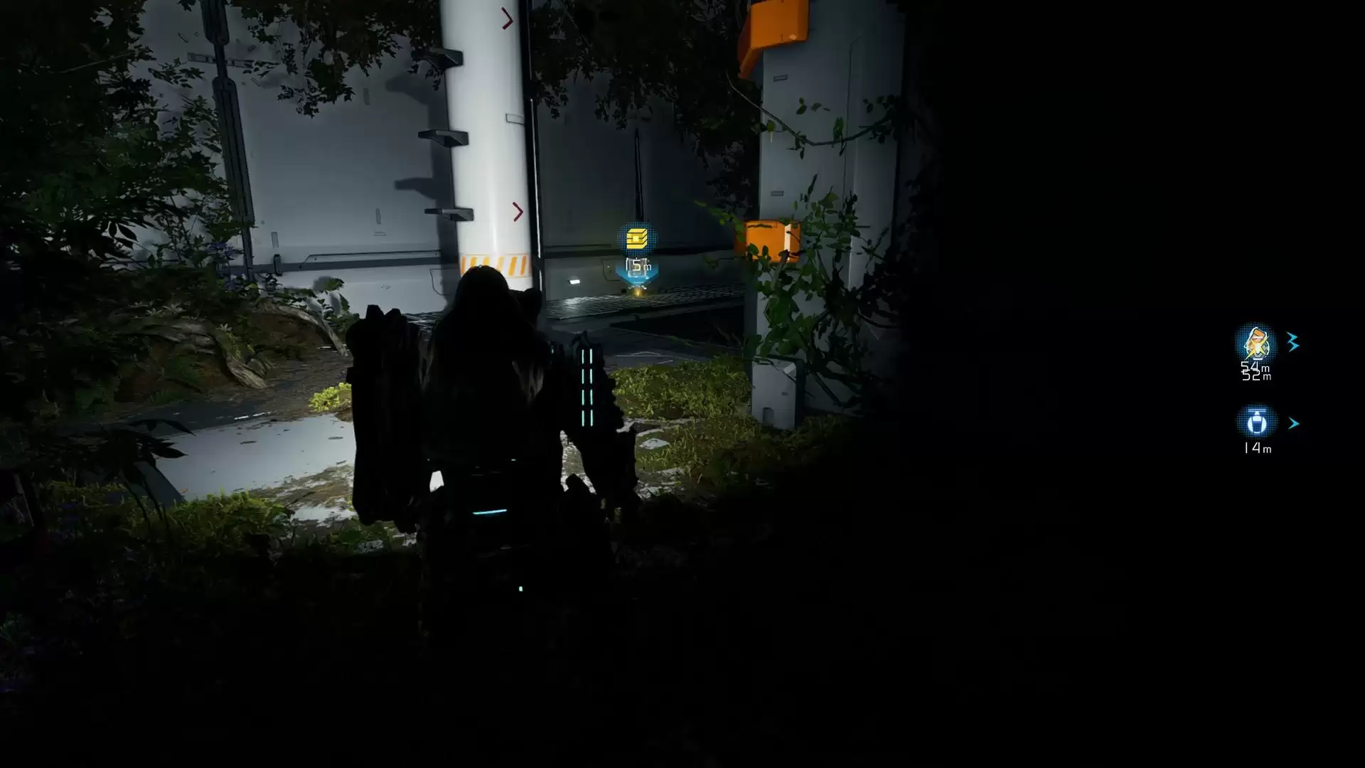 返回前往Meteorology Sim Lab的路径,从右侧护栏处跳下。底部有两个容器,靠近纤维团的那个容器内藏有一个保险箱。开启保险箱可一次性获得三个升级组件。
