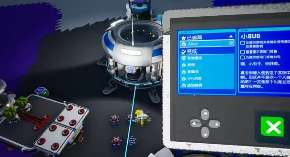 剧情任务告一段落后,游戏会无缝衔接至“维护问题”任务。顾名思义,此任务聚焦于设备维修与基地设施维护。你需要在这颗星球的表面搜寻指定的故障装置,并进行调试与修复。每成功修复一处,剧情便向前推进一环。