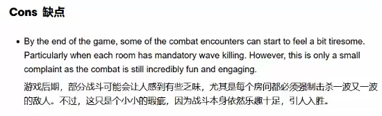 当然,没有作品是完美无缺的。评测也指出,在游戏流程的后期,部分战斗遭遇可能会让玩家感到一丝重复和疲劳,尤其是那些要求“清空每个房间所有波次敌人”的强制性设计。不过,这只能算是一个瑕不掩瑜的小问题,因为游戏整体的战斗节奏与核心乐趣依然出色,足以持续吸引玩家沉浸其中。
