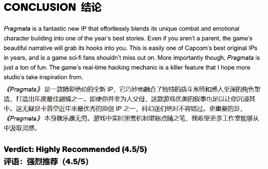 可以说,这是卡普空近年来最令人印象深刻的原创科幻尝试之一,是科幻游戏爱好者绝对不容错过的佳作。但比任何标签更重要的是,它本身“足够好玩且富有创意”。游戏中的实时黑客机制堪称点睛之笔,这种创新的设计巧思,或许能为未来的游戏开发提供宝贵的灵感。