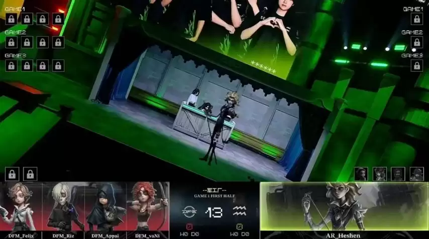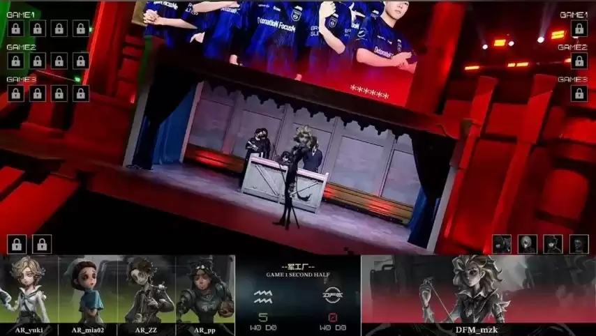 进入第二局,DFM求生者阵容调整为火灾调查员、大副、杂技演员和小说家(禁用了“跛脚羊”);AR监管者Heshen则选出歌剧演员。(BAN位:医生、古董商、佣兵、飞行家)