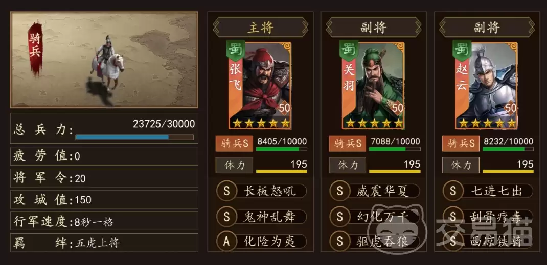 为了确保张飞能够持续站场并稳定提供控制与输出,为其配置高生存向的技能(例如厚甲、不屈等防御类技能)是阵容构建的重中之重。与此同时,副将关羽的培养路线需要明确:应重点走全智力加成路线,以最大化其在战斗中后期的范围伤害(AOE)能力与为团队提供的状态增益效果,从而保证队伍在控制链衔接后的输出结构完整无缺,最终形成“前期强力控场,后期高效收割”的完美战术闭环。