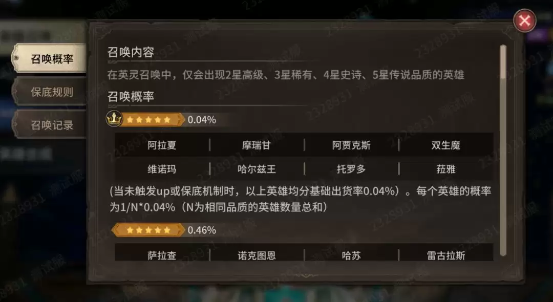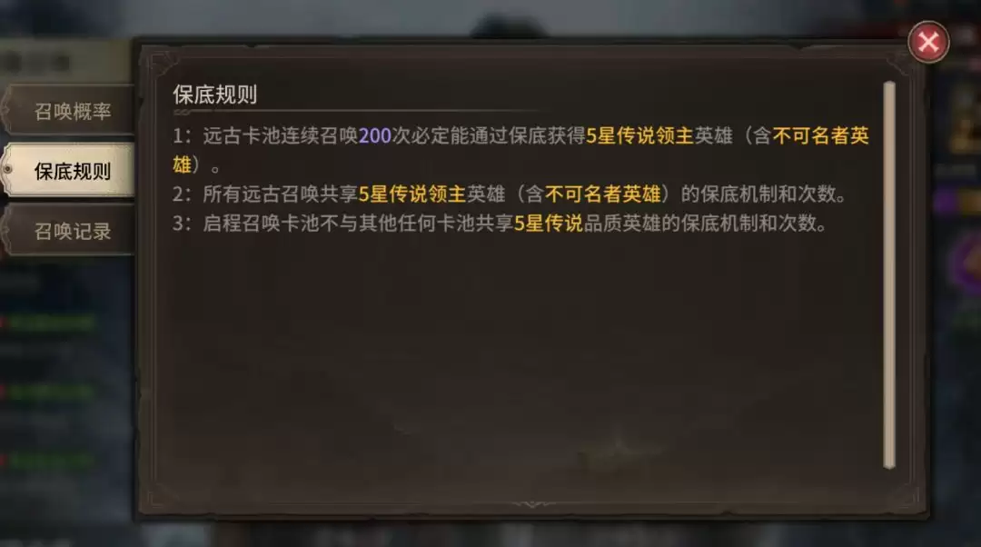红池是获取领主更主要的渠道。它有一个重要机制:连续召唤200次必定获得一名五星传说领主英雄(包含不可名者)。更有利的是,所有红池共享这个保底计数。例如你在A红池抽取100次未获得,下次其他红池开放时,再抽100次就必定触发保底。若想获取特定领主,最明智的策略是等待其对应的UP卡池开放,届时该领主的抽取概率将提升20倍。