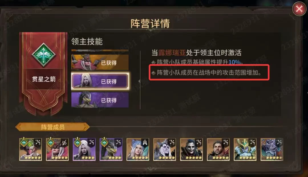 请注意一个关键细节:领主技能仅对同列(即同一小队)内的同阵营成员生效。因此,想要享受加成,必须将领主与需要增益的队友编入同一列。