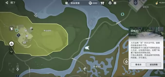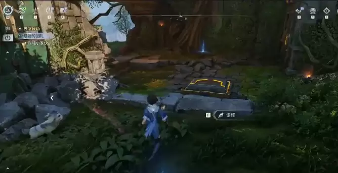 完成上述步骤后,需立即进行场景转换。传送至下一个关键点【凄莫林地渡石】,并将追踪目标设置为【踏板巡门】,开启探索指引。跟随导航行至左侧洞口,此处再次需要西施的技能进行互动操作。