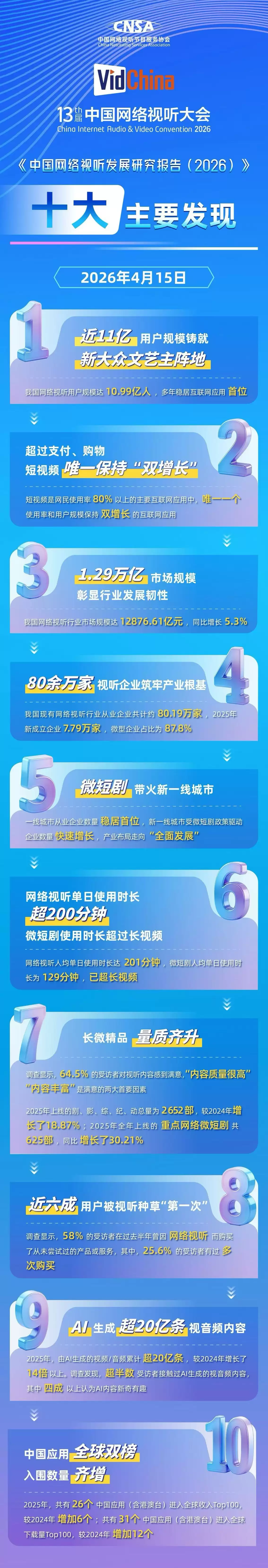 一个显著的变化是,传统长视频平台及其内容在大会议程中的权重被明显降低。取而代之,占据舞台中央、成为核心议题的,是短视频、微短剧以及贯穿始终的人工智能(AI)。根据大会现场权威发布的《中国网络视听发展研究报告(2026)》数据显示,在网民使用率超过80%的核心互联网应用中,短视频是唯一实现用户规模与使用时长“双增长”的细分赛道。这标志着,从内容创作、分发机制到商业模式探索,行业的聚光灯已不再聚焦于长剧。长视频甚至未能设立独立的专题论坛,而AI技术与微短剧业态,则毫无争议地成为了本届行业年度盛会的绝对主角。