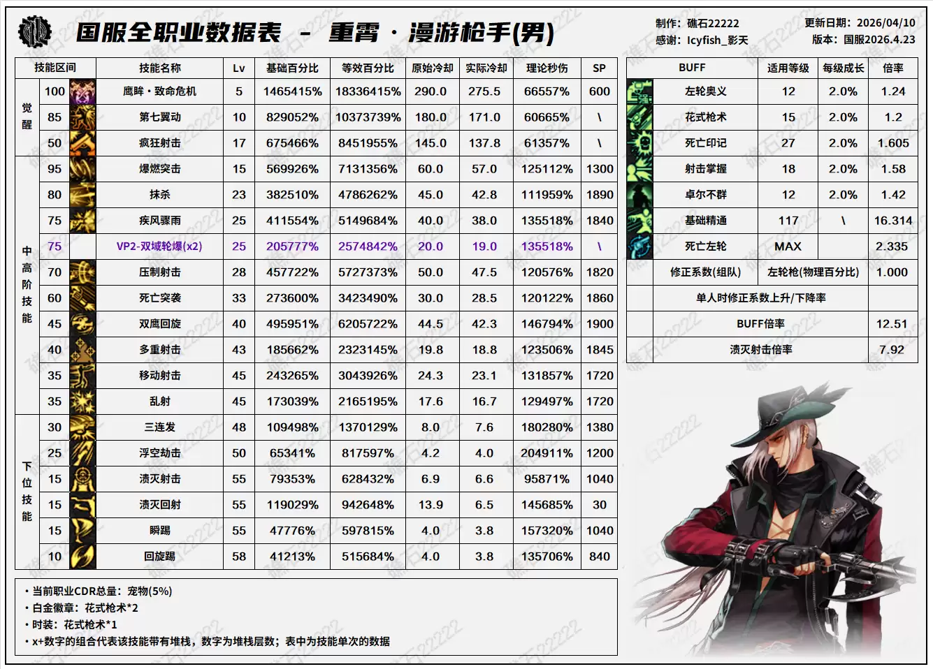 漫游枪手,凭借其华丽的枪术表演与高额的瞬间爆发伤害,在《地下城与勇士》的千海天版本中获得了重要的技能数据调整。本文将为您深度解析男漫游在此次更新后的核心技能数值变化,帮助您清晰把握技能增强趋势,优化输出循环与实战策略。