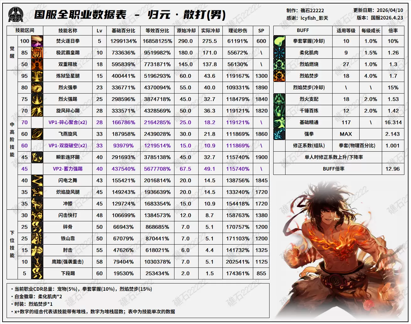 DNF千海天版本男散打技能数据一览