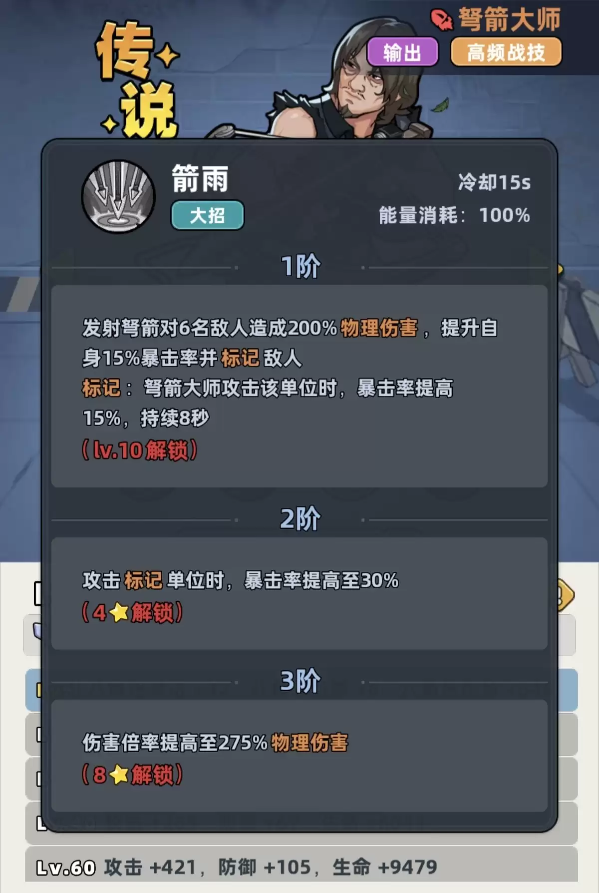 作为传说品质的角色,弩箭大师完全有能力在游戏的前中期担当队伍的主力输出。对于平民玩家和微氪玩家而言,他的优势尤为突出:获取途径相对多样,养成成本较低,能够更快速地提升至高星级,从而解锁那些强力的被动效果。其核心战斗风格,围绕着高频率的技能释放与暴击触发展开。