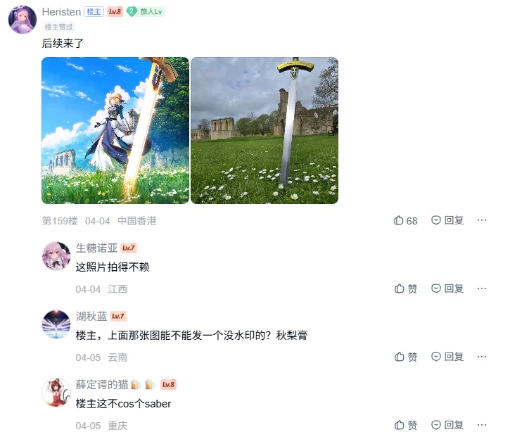 整件事的起因,源于一位国内《Fate》忠实粉丝的英国朝圣计划。他的目标清晰而浪漫:前往英国,探访传说中的亚瑟王陵墓,并在这片承载着史诗的土地上,为自己珍藏的“誓约胜利之剑”(Excalibur,粉丝昵称“咖喱棒”)拍摄一组极具纪念意义的照片。