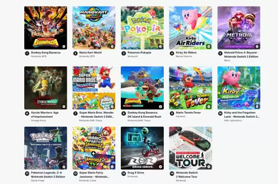 Switch 2独占游戏排行榜出炉:经典IP续作强势领跑