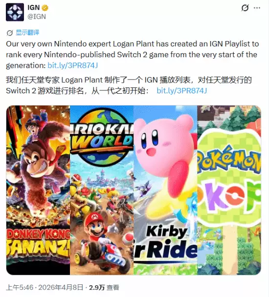 近日,IGN知名任天堂分析师Logan Plant发布了一份备受关注的Switch 2独占游戏期待度榜单,对目前已确认的14款第一方独占新作进行了专业排序。结果显示,经典IP的强势回归成为最大亮点——《咚奇刚:蕉力全开》凭借超高人气与创新玩法,成功登顶榜首。