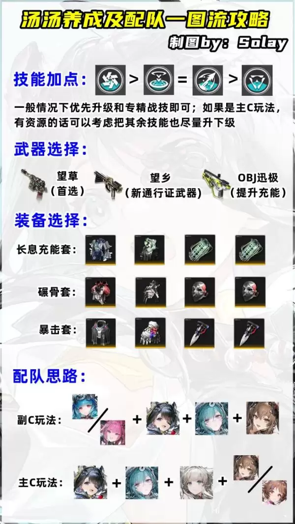 总而言之,汤汤的养成方向最终取决于你希望她在阵容中扮演的角色。资源分配上优先保证战技等级,武器以“落草”为终极目标,再根据副C或主C的定位来灵活调整装备套装与队友搭配,即可让这位角色在《明日方舟:终末地》中发挥出全部实力。
