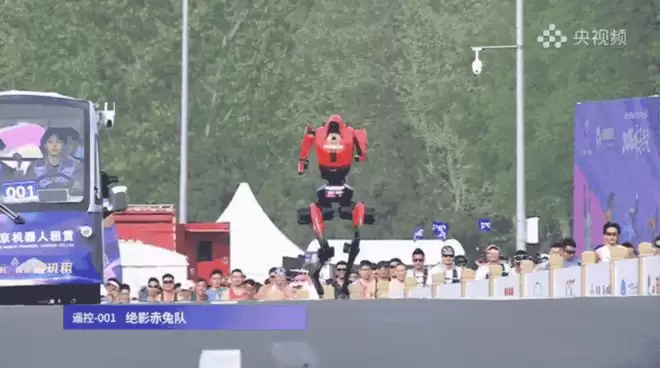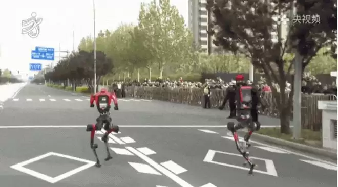 更有机器人跑着跑着突然停下,对着观众席做出互动姿势,仿佛触发了“对人类友善协议”。还有的跑到一半突然停止摆臂,单臂凌空,颇具武侠片中“杨过”独战天下的风范。