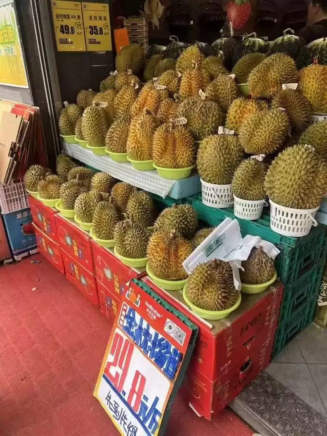 走访中,有水果店老板道出了其中的门道:目前市面上价格相对亲民的主要是泰国榴莲,这得益于物流升级和产量提升。而像马来西亚榴莲,普遍采用树熟后空运或液氮冷冻技术,成本自然高出一截。例如店里同期在售的马来西亚黑刺榴莲,价格就高达每斤98元。老板们普遍判断,眼下泰国榴莲才刚上市不久,预计再等一个月左右,随着供应量进一步加大,价格还会更加实惠。