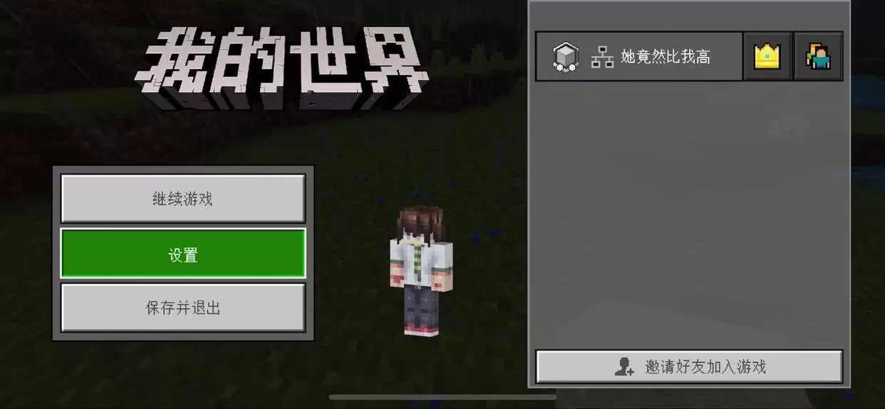 第一步:启动游戏并打开主菜单。进入《我的世界》手游后,请注意屏幕右上角的暂停按钮(通常显示为三条横线或暂停图标),点击它即可呼出游戏主菜单。