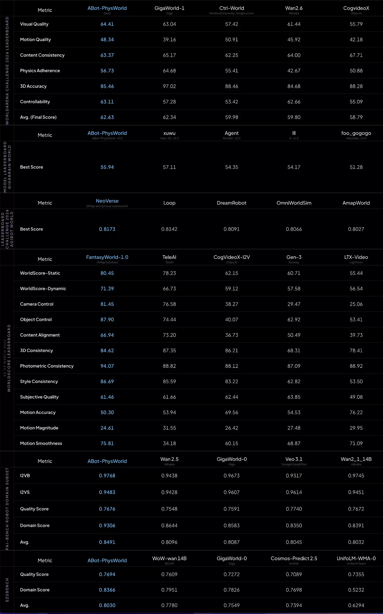 ABot-World:物理合规性、动作可控性、零样本泛化三大维度均达全球第一