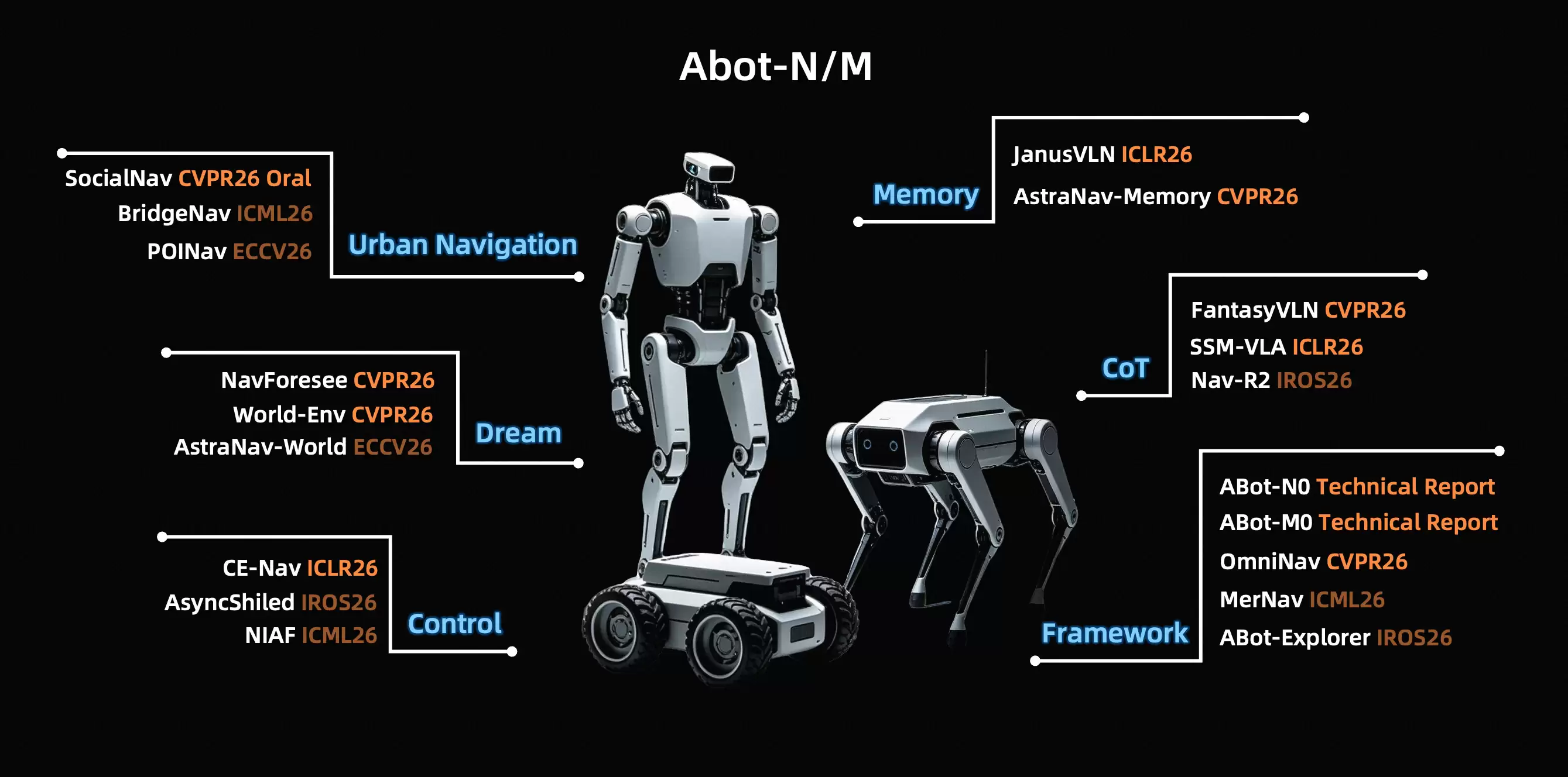 不仅如此,ABot-N与ABot-M的多项子成果还入选了ICLR、CVPR等顶级学术会议,成为精确、高效、安全的机器人导航与操作领域的范式参考。