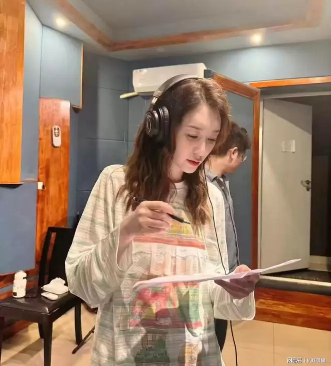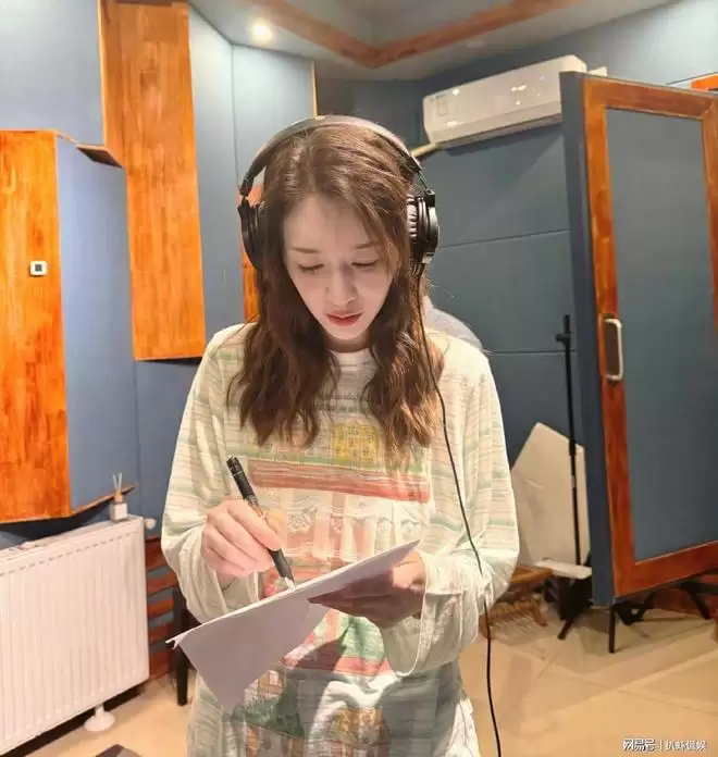 在文字说明下方,李小冉同步分享了一张自己在录音棚工作的现场照片。照片中,她身着休闲服饰,头戴专业监听耳机,手拿歌词稿纸正在认真研读,神情专注。她一边看稿,一边用笔在纸上进行标注,其对舞台准备的严谨态度与投入程度清晰可见。显然,她正在为接下来的公演舞台全力以赴,力求呈现更出色的表演。