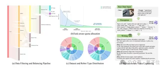 数据层面,高德精选300万条真实操作视频,采用视觉-语言大模型(VLM)与大语言模型(LLM)双阶段标注,构建了四层级的物理语义结构(意图→动作→轨迹→物理关系),为因果推理奠定基础。这相当于将数据拆解成机器人更易“消化”的结构化信息:宏观层(任务意图)、中观层(动作序列)、微观层(轨迹细节)、场景层(物理关系与结果)。这套标注不仅告诉机器人“发生了什么”,更在解释“为什么发生”。
