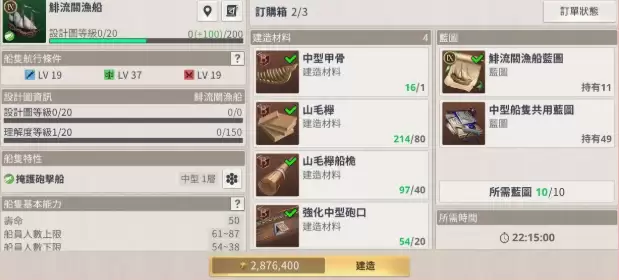 此类材料常被玩家忽略,却是提升舰队机动性的关键。船帆、缆绳、索具等提升航行速度与操控性的配件,大量消耗帆布、绳索、优质布料等物资。对于注重航行效率与探险的提督而言,应尽早开始系统性地收集这类材料。虽然单件配件消耗量看似不高,但为整支舰队进行全面升级时,总需求量将十分惊人。通过特定港口贸易或生产,是稳定获取布料纤维的主要途径。