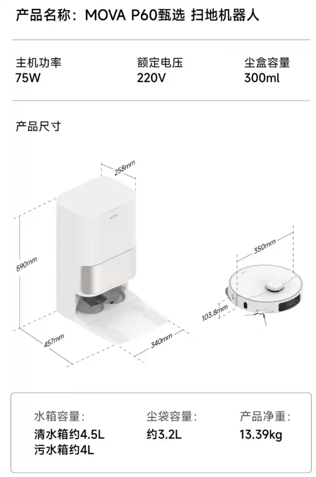 MOVA P60最初于2025年2月上市,标准版官方定价为3999元,而功能更全面的上下水版则为4599元。