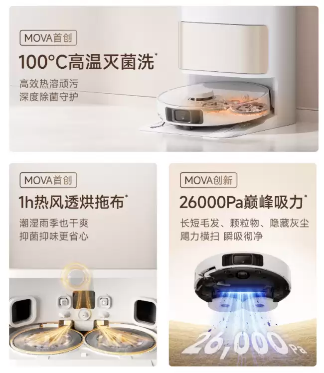 MOVA P60 高温洗扫拖机器人仅需 866 元26000Pa 吸力特惠新低