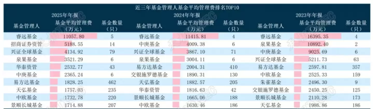 如果说总管理费反映的是一家基金公司的平台厚度,那么单只基金平均管理费所揭示的,就是其单产品的创收效率。