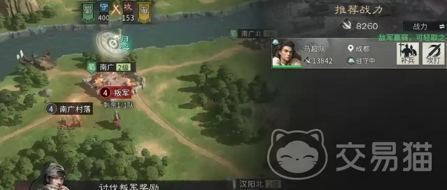 “讨伐叛军”:这是游戏初期开放的核心玩法,也是获取元宝、粮草及村庄占领权的主要来源。需要特别注意的是,9级叛军是一个阶段性的难点,必须等到民心等级升至8级、完成“碧蓝”品质升阶并激活对应被动技能后,才能稳定攻克。推荐战力阈值大约在35000左右,因此开服首日,应集中资源,力争将民心提升至8级,以突破这个关键瓶颈。