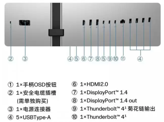 扩展能力是这类一体式办公显示器的另一个考验。惠普734PM在这方面给得相当充足:视频接口包括1个HDMI 2.0和2个DP 1.4;更亮眼的是,它直接提供了2个雷电4接口,这对于连接笔记本、高速数据传输和一线连都非常方便。此外,还有4个USB-A接口(支持KVM功能)和1个RJ45网口,基本上把桌面所需的线缆都集中管理了。