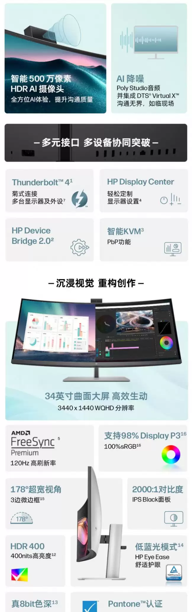 惠普新款34英寸带鱼屏显示器上架:专为高效办公打造