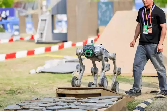 在真实比赛中,得益于关节可靠性与运动控制等领先技术,铜锤M1能从容应对挡鼠板、鹅卵石、涉水、管道、吊桥等高难度关卡。其基于可变拓扑运动控制框架,支持同膝与对膝模式的实时在线切换——在狭窄低矮空间使用同膝模式提升通过性,在高速奔跑与大坡度攀爬时切换对膝模式以大幅增强支撑稳定性,最终实现了“快、准、稳”的极致运动表现。