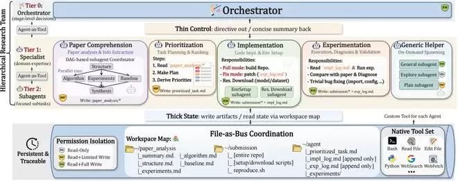 简单理解,它不是把文件当作普通附件来存放,而是把文件系统本身当作长程协作的底座。论文分析、任务计划、实现代码、实验日志、错误记录和中间结果,都被持续写回工作空间,成为后续阶段可以重新读取和利用的持久化产物。