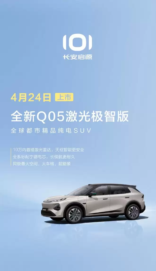 10万元内也有激光雷达,长安启源全新Q05激光极智版4月24日上市