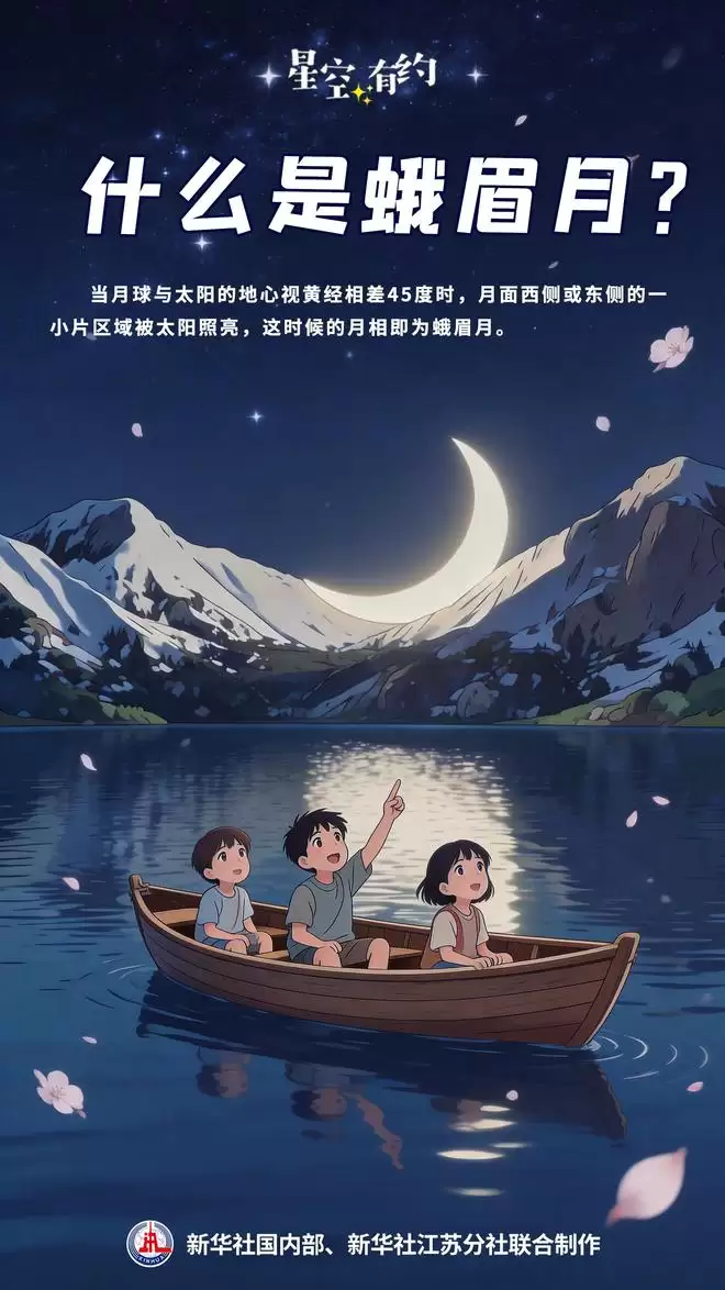 要理解此次天象的独特价值,首先需要了解蛾眉月的成因。中国科学院紫金山天文台科普主管王科超介绍,月亮阴晴圆缺的变化,本质上是日、地、月三者相对位置周期性改变的结果。当月球与太阳的地心视黄经差约为45度时,太阳光仅能照亮月球面向地球一侧的边缘部分,此时呈现的月相便是纤细如眉的蛾眉月。