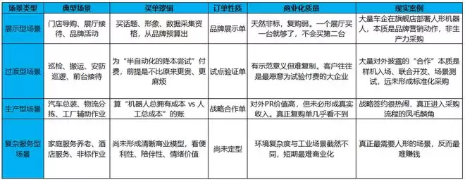 从这张表格里,不难发现一个有趣的行业悖论:那些理论上最需要人形机器人的场景(比如家庭、复杂多变的环境),恰恰因为技术复杂度太高,短期内最难实现商业化;而那些最先能产生收入的场景(比如展厅、固定路线巡检),往往又不需要人形机器人的全套能力。