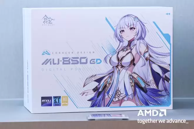从包装上,我们能直接获取几个关键信息。首先,这款电源紧跟最新标准,符合ATX 3.1和PCIe CEM 5.1规范,并且拿到了80 PLUS金牌转换效率认证,能效表现有基础保障。另一个有趣的点是它的设计语言:鑫谷这次将自家的昆仑IP代言人“太阳圣女·羲和”形象,全面融入了包装和随赠物料之中,瞄准新生代年轻化市场的意图相当明显。