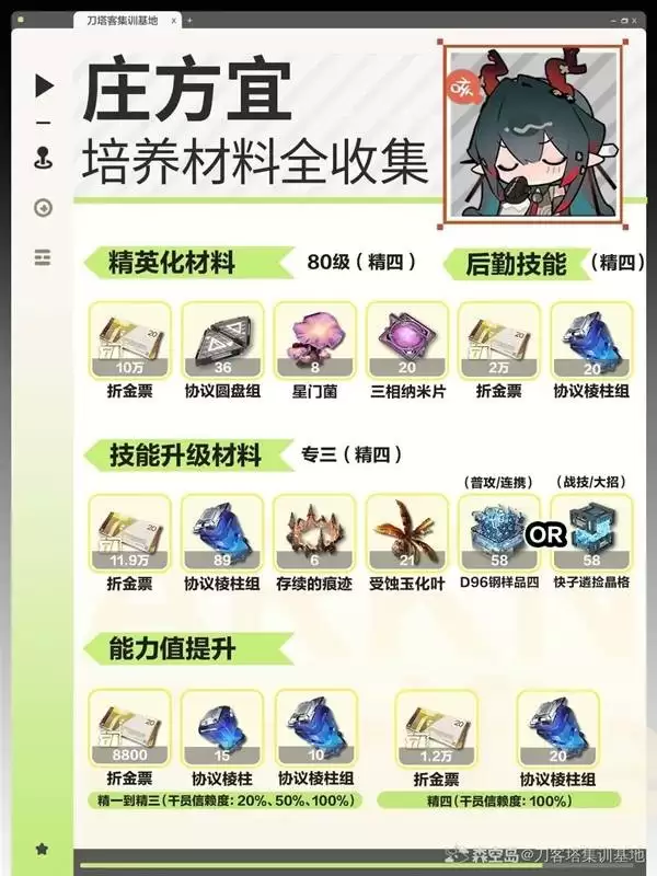 《明日方舟:终末地》1.2版本限定角色庄方宜养成攻略:材料清单与资源规划全解析