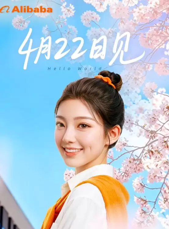 4月20日,阿里巴巴最新发布主题为“4月22日见 Hello World”的预热海报,画面以樱花蓝天为背景,搭配一位清新风格的AI数字人形象,引发行业对其即将发布的AI新品的广泛猜测。