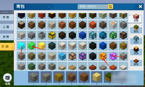 第三步,开始准备四种必需的材料方块:星铜石块、紫银石块、蓝钻块以及孔雀石块。这四种方块缺一不可,它们的样貌可以参考下方图片。