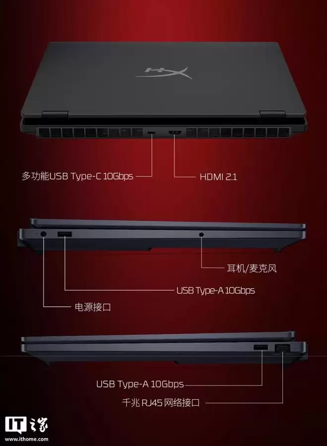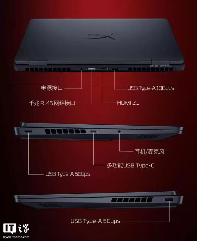 这块16英寸的屏幕参数更为激进,同样是2.5K分辨率、500尼特亮度,但刷新率提升到了240Hz,对于竞技类游戏玩家来说是个好消息。C面的键盘也升级为四分区背光,更具游戏氛围。接口配置略有不同:背面提供了一个10Gbps的USB-A接口、一个HDMI 2.1接口和一个RJ45网口;左侧则是一个5Gbps的USB-A接口、一个“多功能”USB-C接口以及3.5mm音频接口;右侧还有一个5Gbps的USB-A接口。