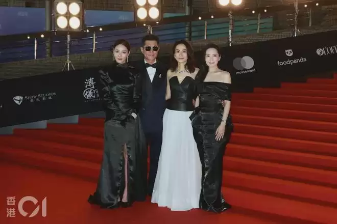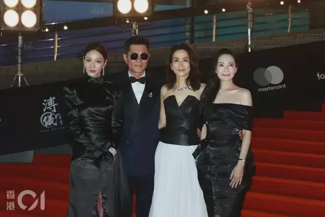 古天乐与滕丽名、宣萱、郭羡妮行红地毡。(叶志明摄)