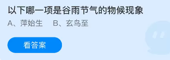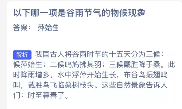 以下哪一项是谷雨节气的物候现象?支付宝蚂蚁庄园每日答题解析