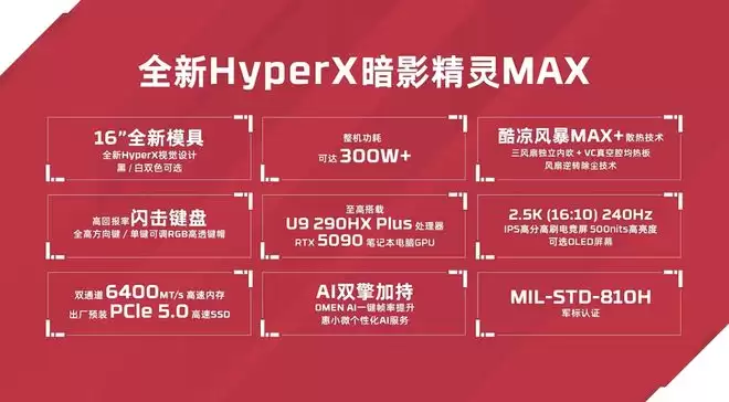 从全新的外观模具、双顶级屏幕选项,到极致的性能释放与高效的散热设计,2026款HyperX暗影精灵MAX 16英寸游戏本全方位展现了一款旗舰级电竞本该有的强悍实力。它不仅仅是顶级硬件的简单集合,更是在玩家关注的每一个体验细节上进行了深度优化,为下一代高性能游戏笔记本电脑的发展树立了一个清晰的标杆。
