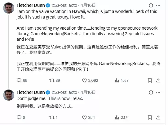 然而,更值得关注的细节在于,即便身处豪华度假之中,邓恩也并未完全脱离工作状态。他透露自己利用空闲时间,持续维护着开源网络库GameNetworkingSockets,并顺手修复了一系列历史遗留的技术问题。按照他的说法,在这种相对放松的环境中,思维反而更容易集中,更有利于专注地梳理复杂代码结构。