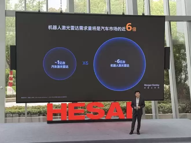 尽管在汽车领域已深耕多年,但禾赛认为,激光雷达的真正价值远未被完全挖掘。它的角色正在发生深刻转变:从单一的汽车零部件,转向更基础的物理AI基础设施。而在智能汽车之外,一个更具想象力的赛道——机器人,正在成为激光雷达公司的第二增长曲线。摩根士丹利的预测数据提供了一个惊人的视角:到2050年,机器人的激光雷达需求量,可能会达到汽车的6倍左右。
